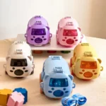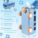 • 【Cute Cartoon Bus Design】Kids waterbottle a cartoon bus shape with movable wheels at the bottom. Made of eco-friendly food grade material, 100% BPA free.