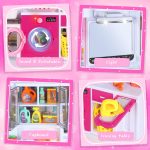 Realistic Details & Features – When girls playing with mini bathroom set, they can turn on the light on the mirror and appreciate their beauty in the mirror. The rollers rotate and make sounds when the washing machine is working. Pretend to iron clothes at the ironing station. So much fun and enhancing the overall play experience.
