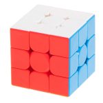 The image depicts a 3×3 Rubik’s Cube, an iconic puzzle toy that has fascinated enthusiasts since its invention in 1974. The cube in the image features a modern design with rounded corners, typically seen in speed cubes that allow for smoother, faster turns. This design minimizes friction and enhances the cuber’s ability to perform quick and precise movements.The cube’s color scheme includes three visible faces: yellow on the top, blue on the left, and red on the right. Each face of the cube consists of nine smaller squares, with each color uniformly distributed. The surface has a matte finish, which helps reduce glare and provides a better grip, essential for both casual play and competitive solving.The cube is positioned on a light-colored, likely marble, surface that contrasts with its vibrant colors. The background appears slightly blurred, emphasizing the cube as the focal point of the image. This setting suggests an indoor environment, possibly a living room or a study area, where someone might be engaging in solving the puzzle or simply showcasing their collection. The overall composition highlights the cube’s aesthetic appeal and its enduring popularity as both a challenging puzzle and a cultural icon.