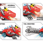 - Mechanical Spray Dragon: This mechanical spray dragon toys body is assembled by many different sizes small parts. Its neck and tail can shake, wings can swing, mouth can move, and its strong feet are with wheels, walk with simulative dinosaur roars.
