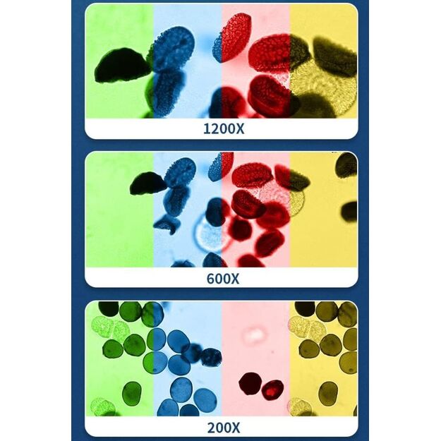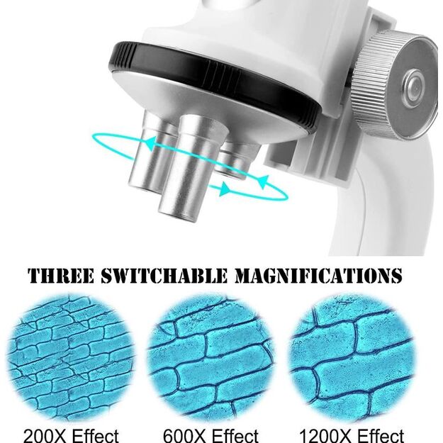 - 【High Magnification】Kids Beginner Microscope provides high magnification for educational applications, 200X, 600x, and 1200x Magnification.